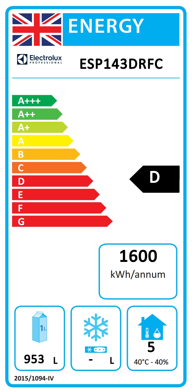 Armadio certificato di classe A in condizioni di lavoro pesante (40°C - 40% di umidità) secondo le direttive Europee di Ecodesign. Il risparmio energetico fino a 300 €/anno si ottiene confrontando i frigoriferi e freezer della classe G con quelli equivalenti della classe A (costo energetico di 0,21 €/kWh e volume netto di 503 lt).